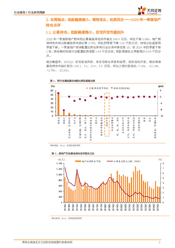 天风证券:房地产行业研究周报:2025年一季度地产持仓点评,低配幅度缩小,增持龙头、优质民企.pdf