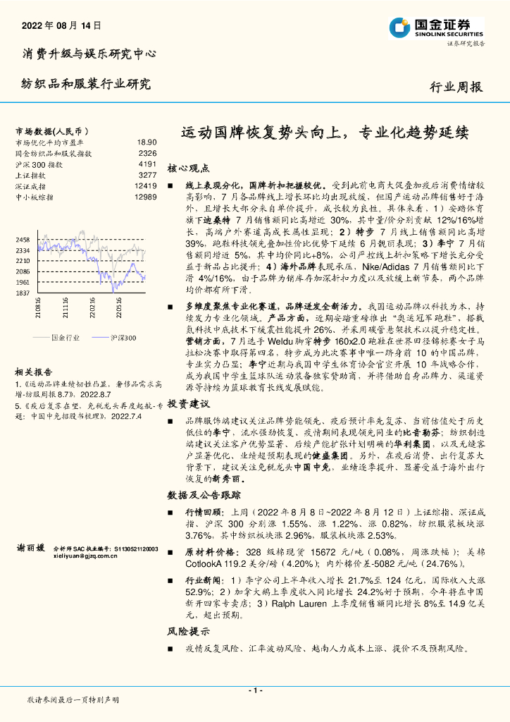 国金证券:纺织品和服装行业研究:运动国牌恢复势头向上,专业化趋势延续.pdf