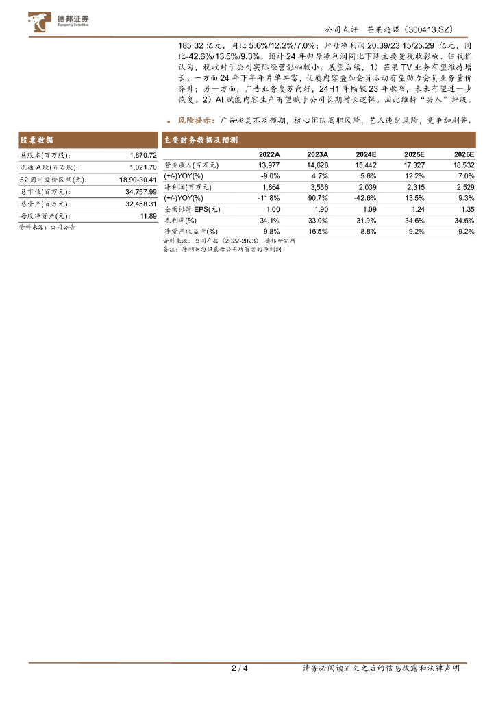 德邦证券:芒果超媒(300413)-24H1业绩点评:内容驱动会员收入增长,关注后续孵化AI产品.pdf