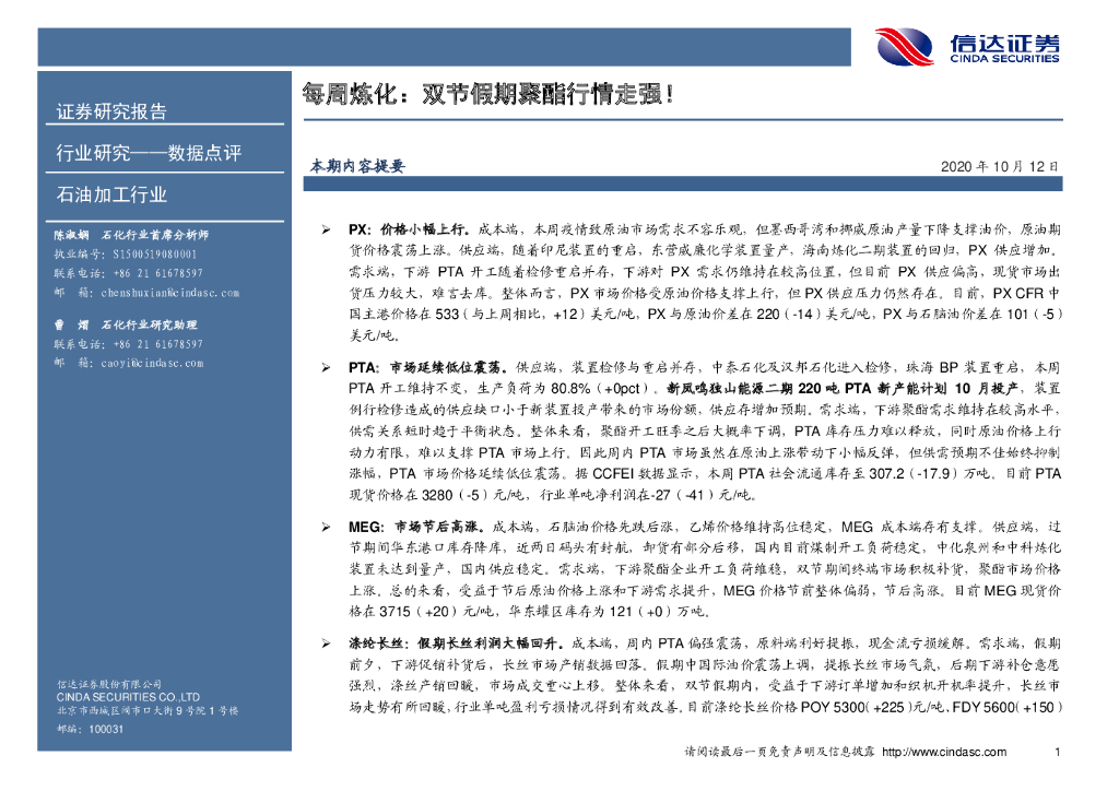信达证券:石油加工行业每周炼化:双节假期聚酯行情走强!.pdf