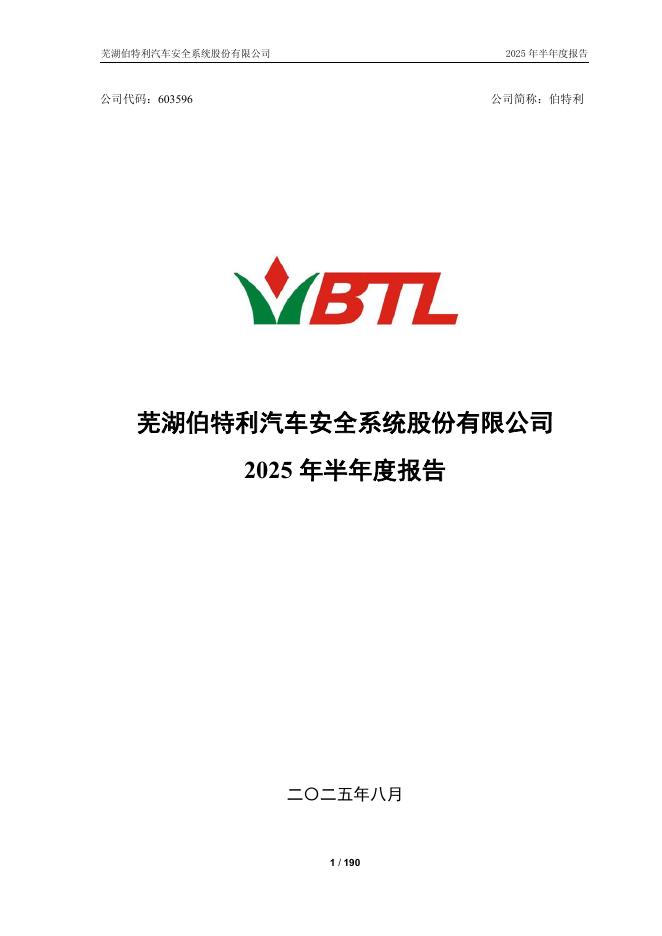 603596-伯特利:伯特利2025年半年度报告.pdf