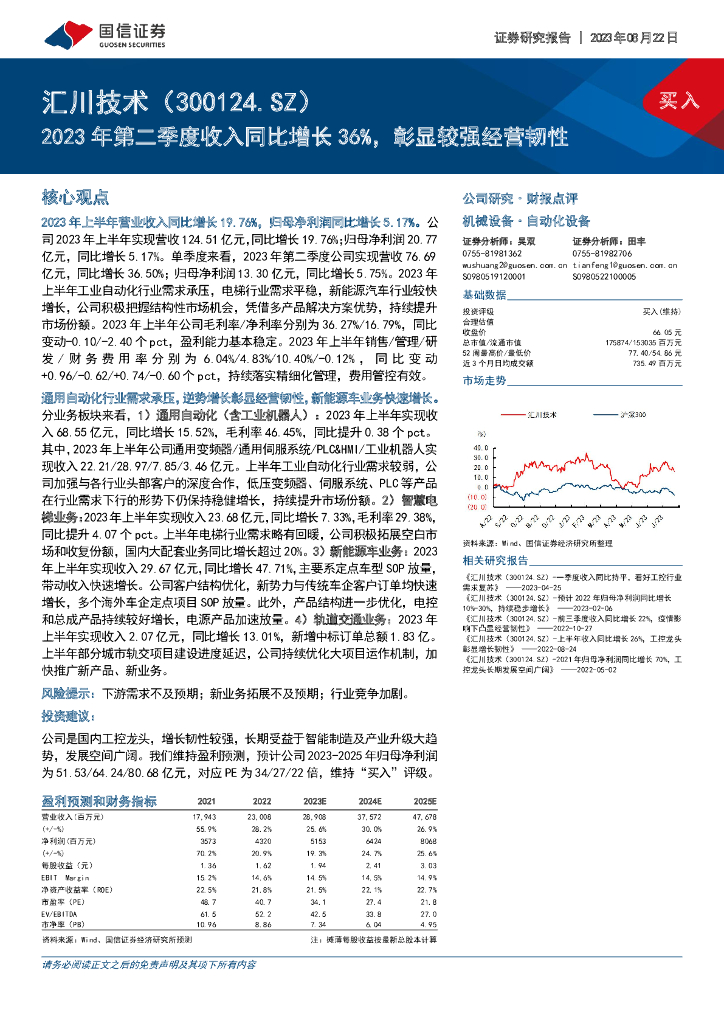 国信证券:汇川技术(300124)-2023年第二季度收入同比增长36%,彰显较强经营韧性.pdf