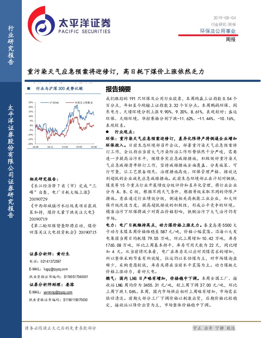 太平洋证券:环保及公用事业周报:重污染天气应急预案将迎修订,高日耗下煤价上涨依然乏力.pdf