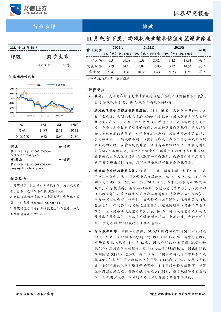 财信证券:传媒行业点评:11月版号下发,游戏板块业绩和估值有望逐步修复.pdf