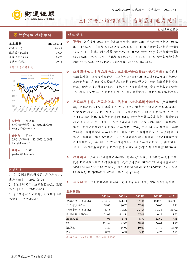 财通证券:比亚迪(002594)-H1预告业绩超预期,看好盈利能力提升.pdf