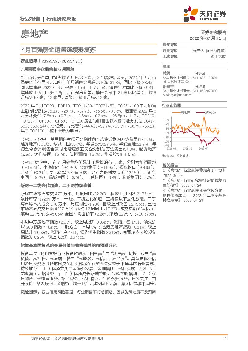 天风证券:房地产行业研究周报:7月百强房企销售延续弱复苏.pdf