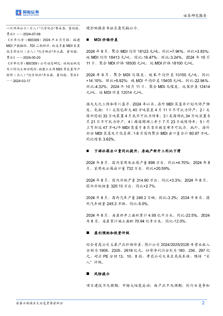 国海证券:万华化学(600309)-9月月报:聚合MDI价格上涨,烟台产业园PDH装置复产.pdf