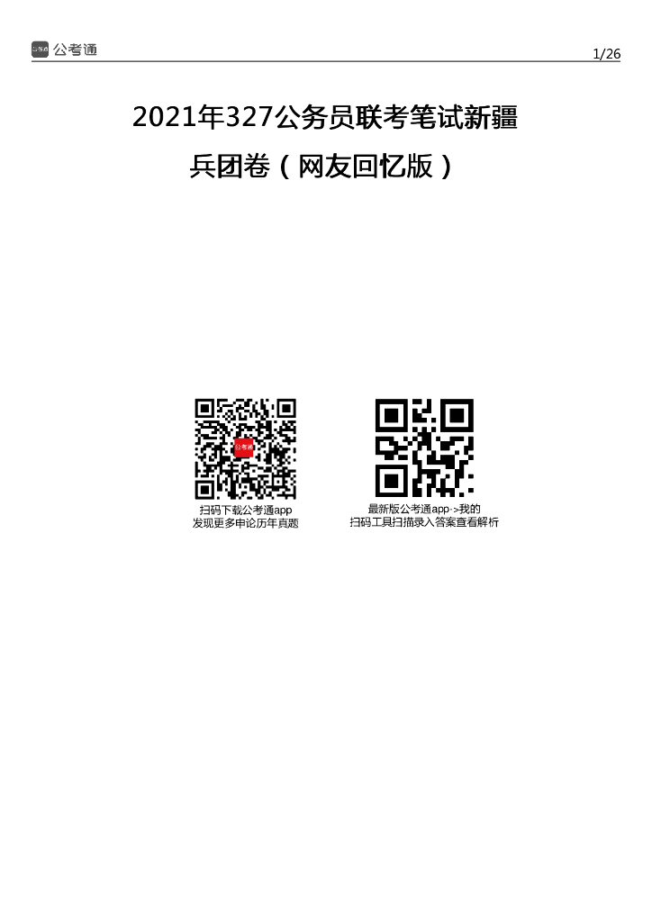 2021年新疆兵团公务员考试行测试题(考生回忆版).pdf