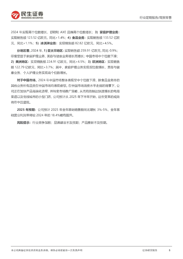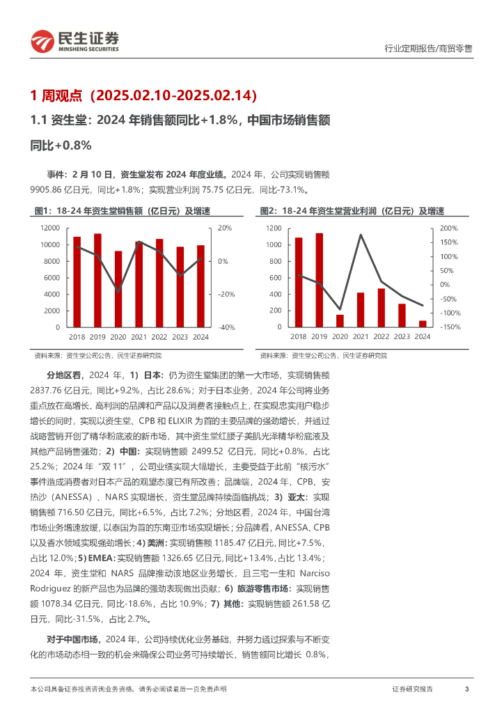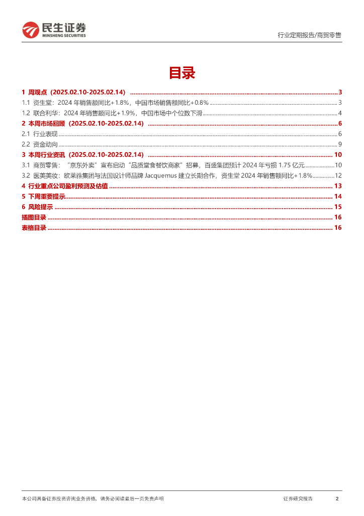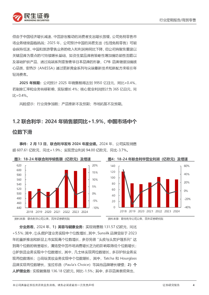 民生证券:零售周观点:资生堂2024年销售额同比+1.8%,联合利华2024年销售额同比+1.9%.pdf
