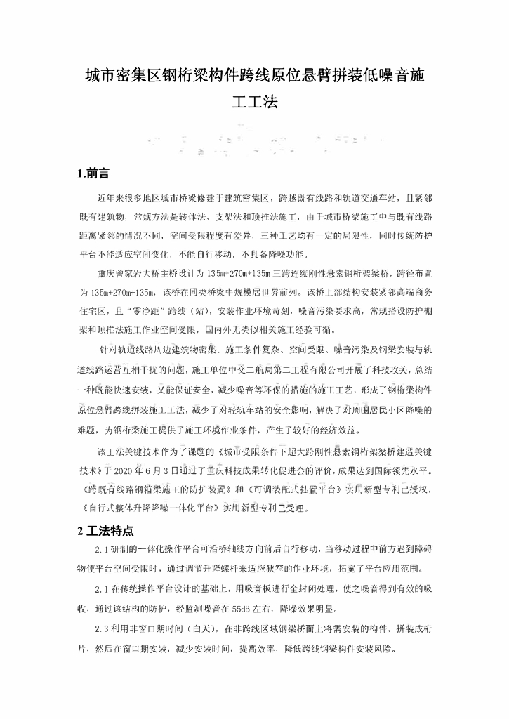 钢桁梁构件跨线原位悬臂拼装低噪音施工工法.pdf