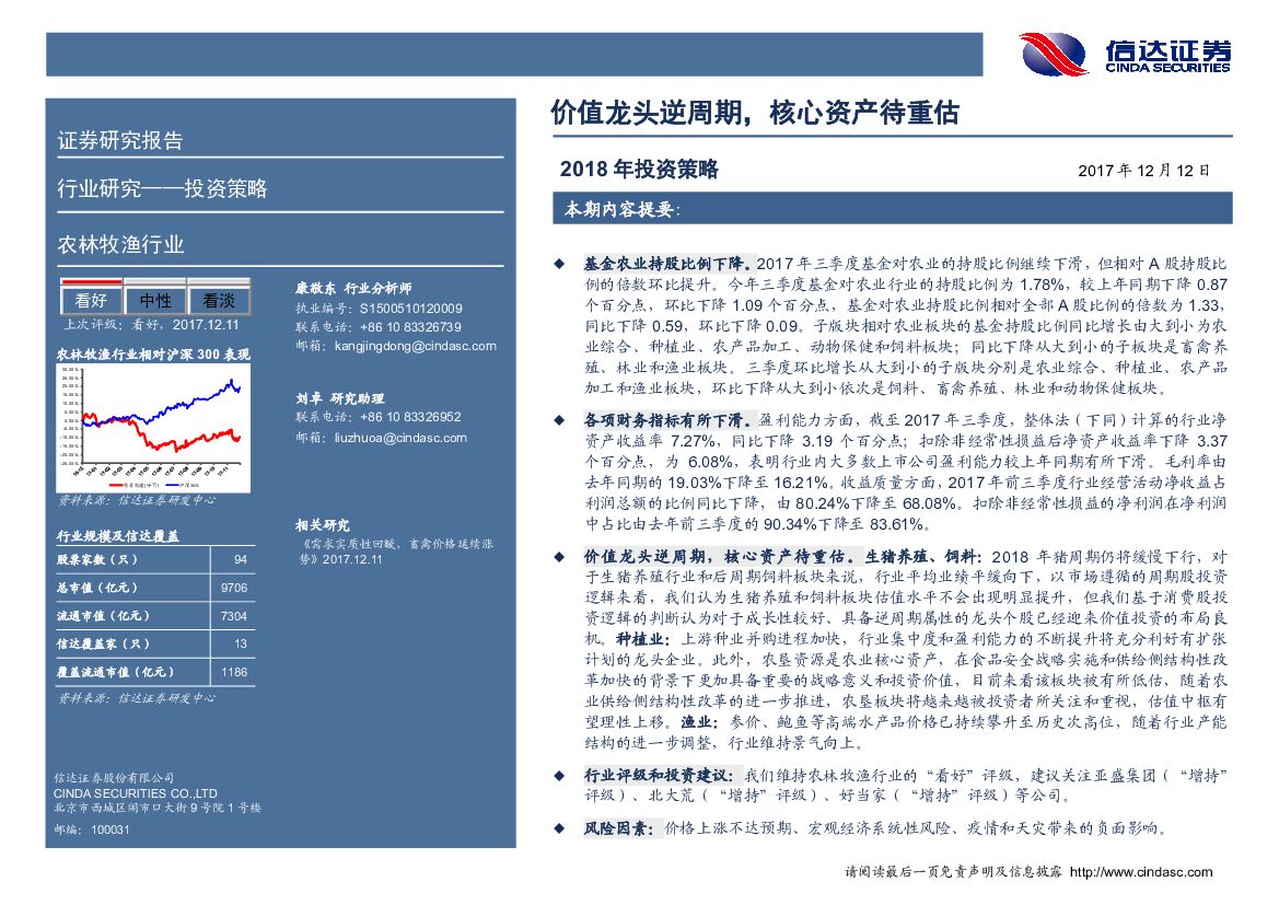 信达证券:农林牧渔行业2018年投资策略:价值龙头逆周期,核心资产待重估.pdf