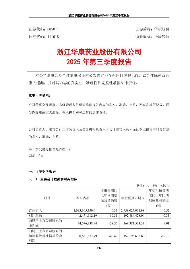 111018-华康股份:华康股份2025年第三季度报告.pdf