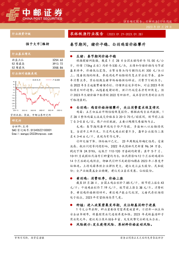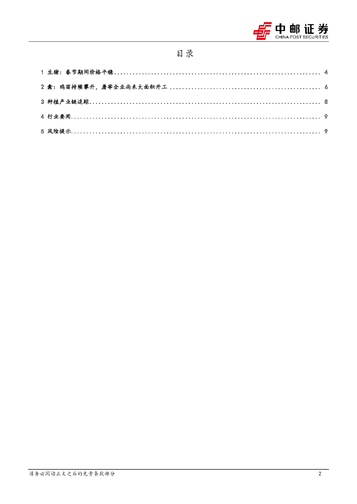 中邮证券:农林牧渔行业报告:春节期间,猪价平稳、白羽鸡苗价格攀升.pdf
