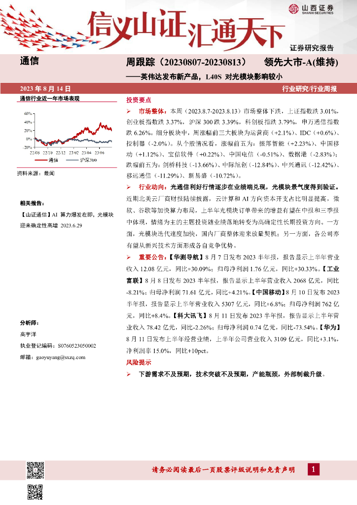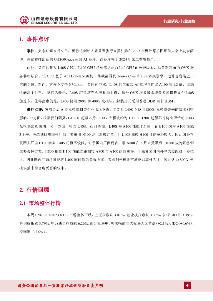 山西证券:通信周跟踪:英伟达发布新产品,L40S对光模块影响较小.pdf