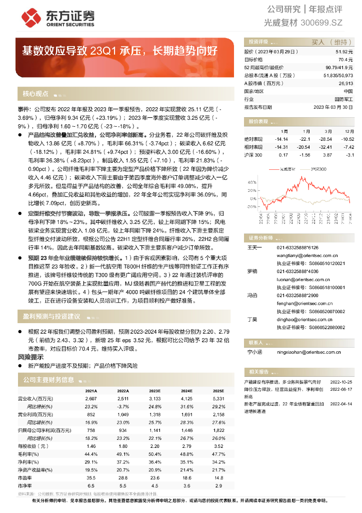 东方证券:光威复材(300699)-基数效应导致23Q1承压,长期趋势向好.pdf
