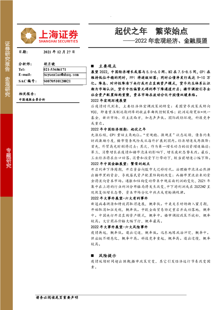 上海证券:起伏之年 繁荣始点——2022年宏观经济、金融展望.pdf