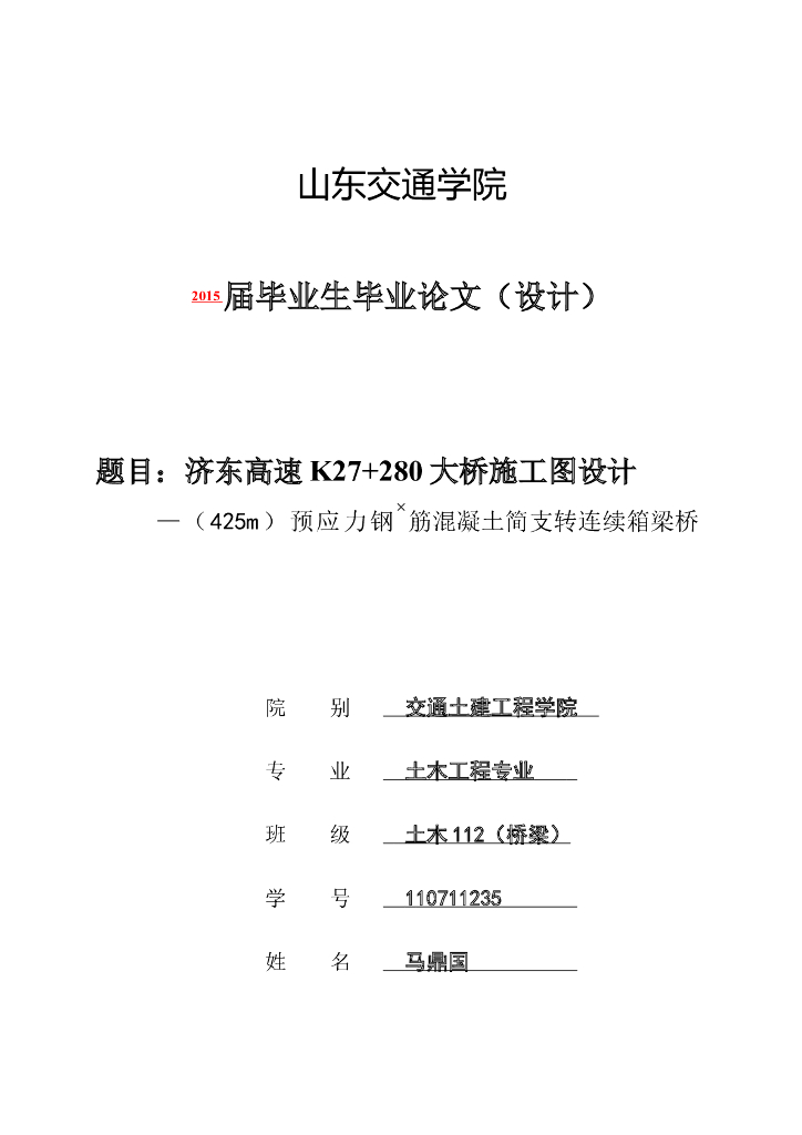 济东高速大桥施工图设计(毕业设计共133页).doc
