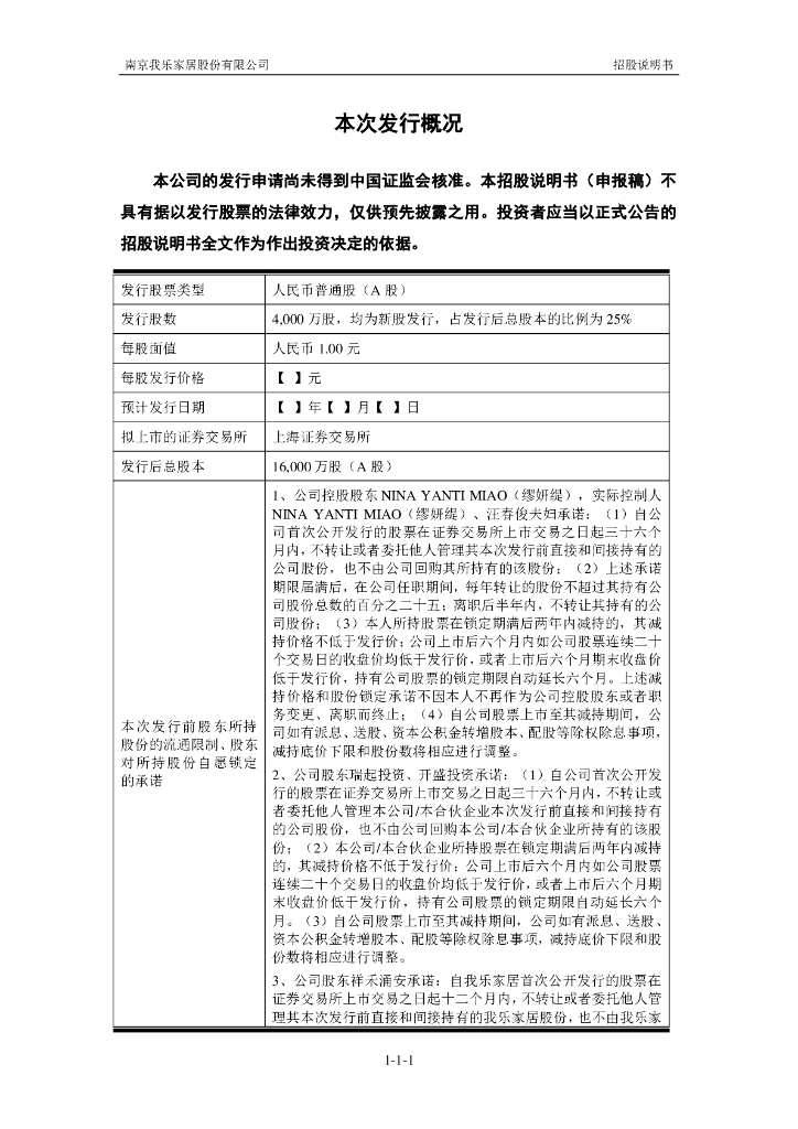 南京我乐家居股份有限公司上交所主板IPO上市招股说明书.pdf