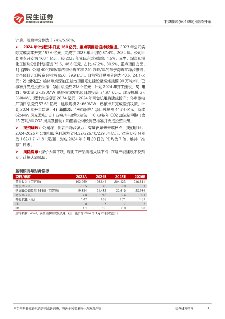 民生证券:中煤能源(601898)-2023年年报点评:煤炭产量释放驱动业绩增长,新项目赋能长期发展.pdf