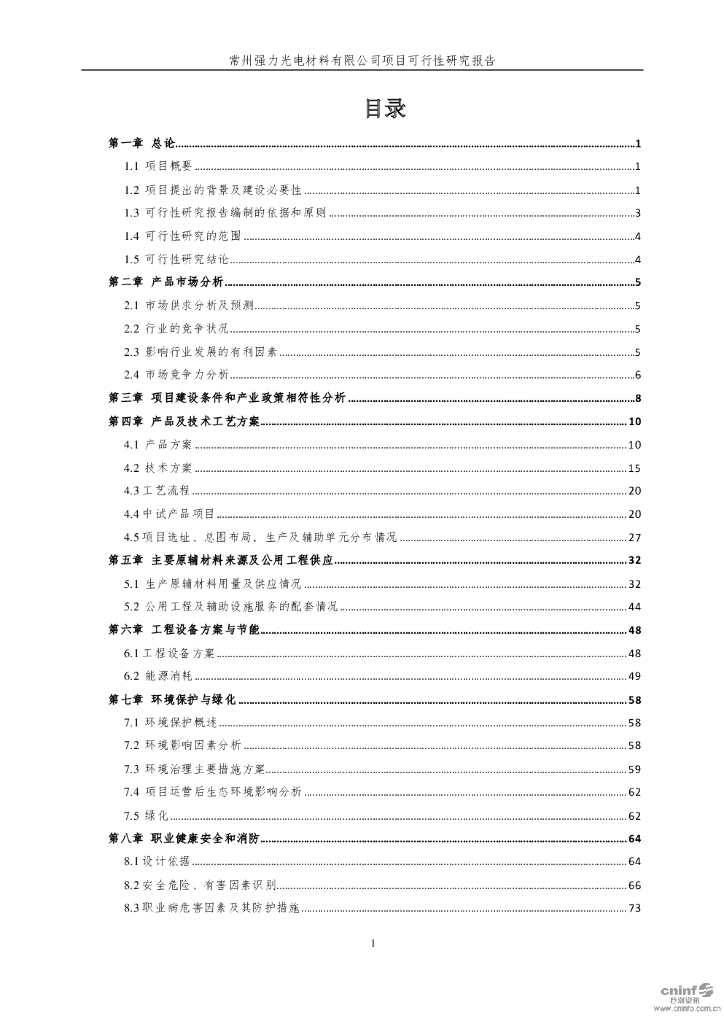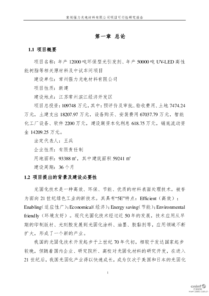 常州强力:新建环保型光引发剂及高性能树脂等相关原材料及中试车间项目可行性报告.pdf