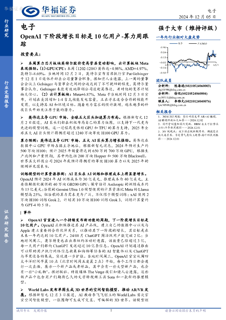 华福证券:电子行业算力周跟踪:OpenAI下阶段增长目标是10亿用户.pdf