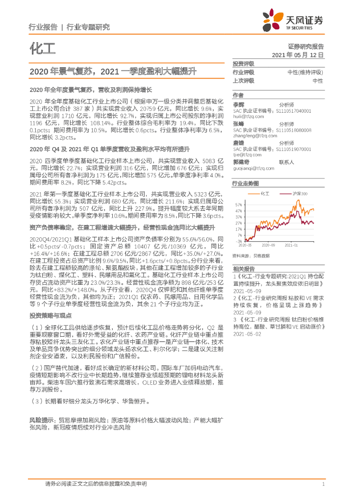 天风证券:化工行业专题研究:2020年景气复苏,2021一季度盈利大幅提升.pdf