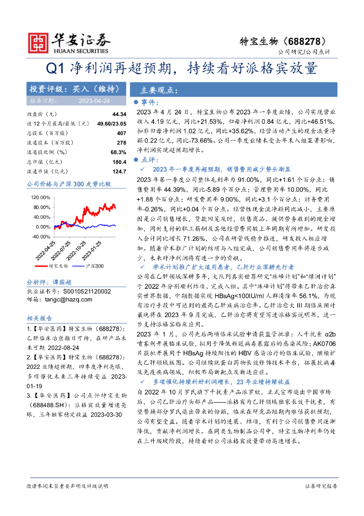 华安证券:特宝生物(688278)-Q1净利润再超预期,持续看好派格宾放量.pdf