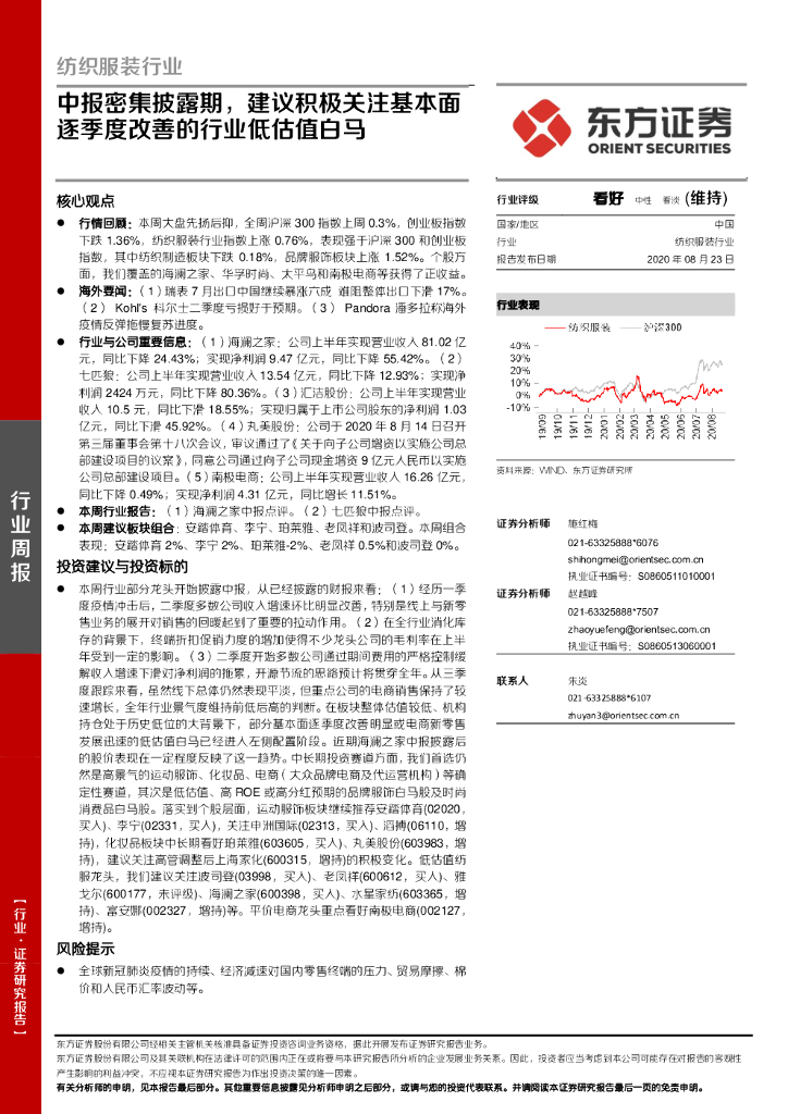 东方证券:纺织服装行业周报:中报密集披露期,建议积极关注基本面逐季度改善的行业低估值白马.pdf