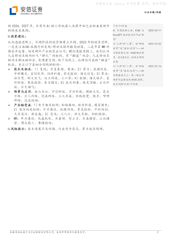 安信证券:AI专题报告之八:从“上网”到“上算”,由“网络世界”至“虚拟现实”-为何我们看好AIGC/ChatGPT+MR这条主线?.pdf