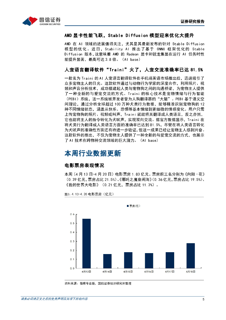 国信证券:电影行业点评:国庆档票房同比向下,持续看好影视行业政策拐点与AIGC落地应用