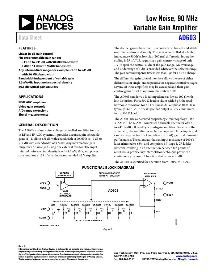 ANALOG DEVICES AD603 英文产品数据手册 Rev K.pdf