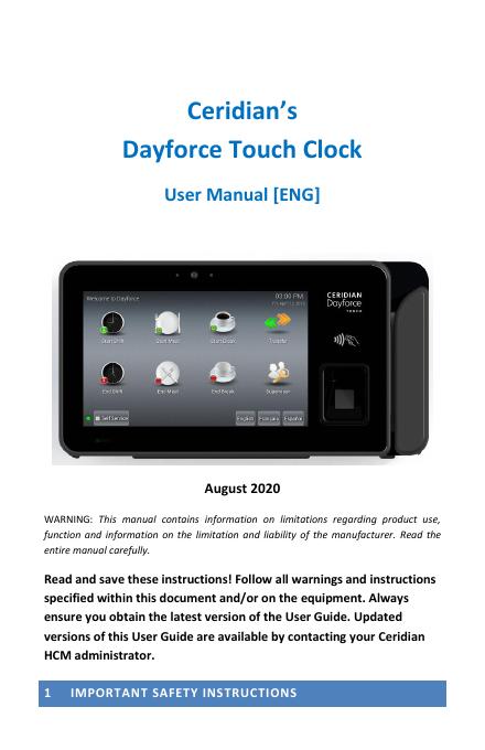 Ceridian 的 Dayforce Touch Clock 用户手册.pdf