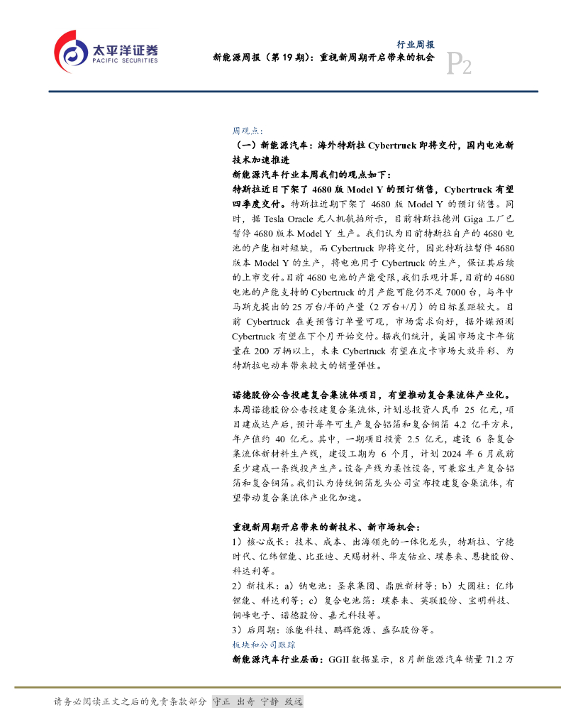 太平洋证券:新能源周报(第57期):重视特斯拉新产品周期,新技术加速.pdf