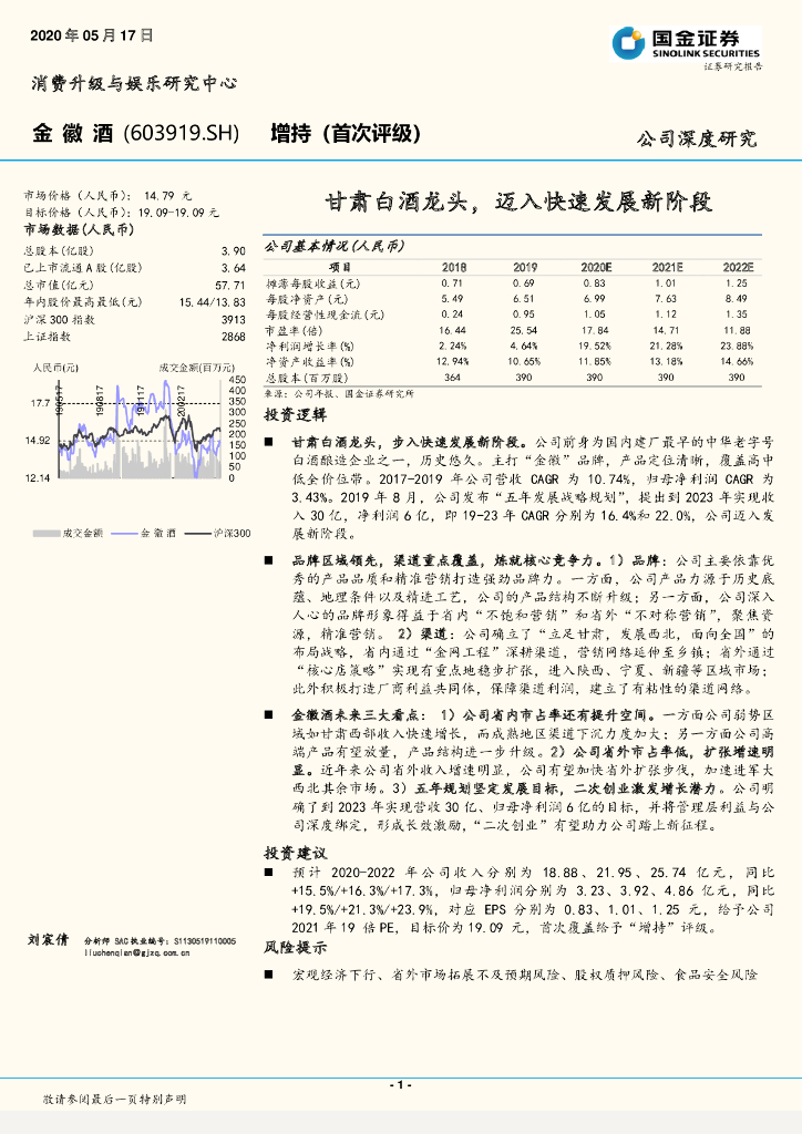 国金证券:金徽酒(603919)-甘肃白酒龙头,迈入快速发展新阶段.pdf