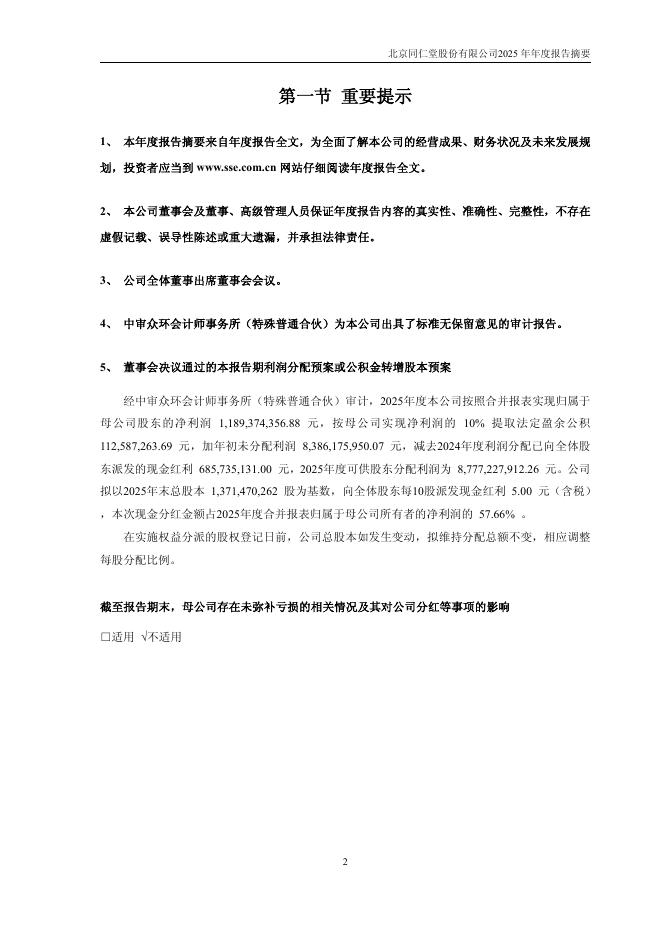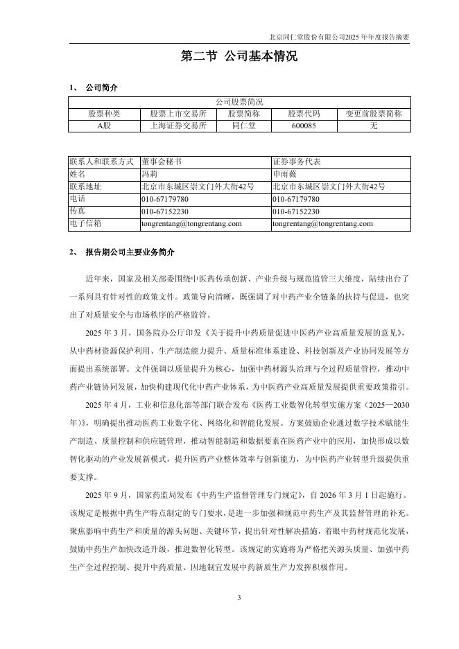 600085-同仁堂:同仁堂2025年年度报告摘要.pdf