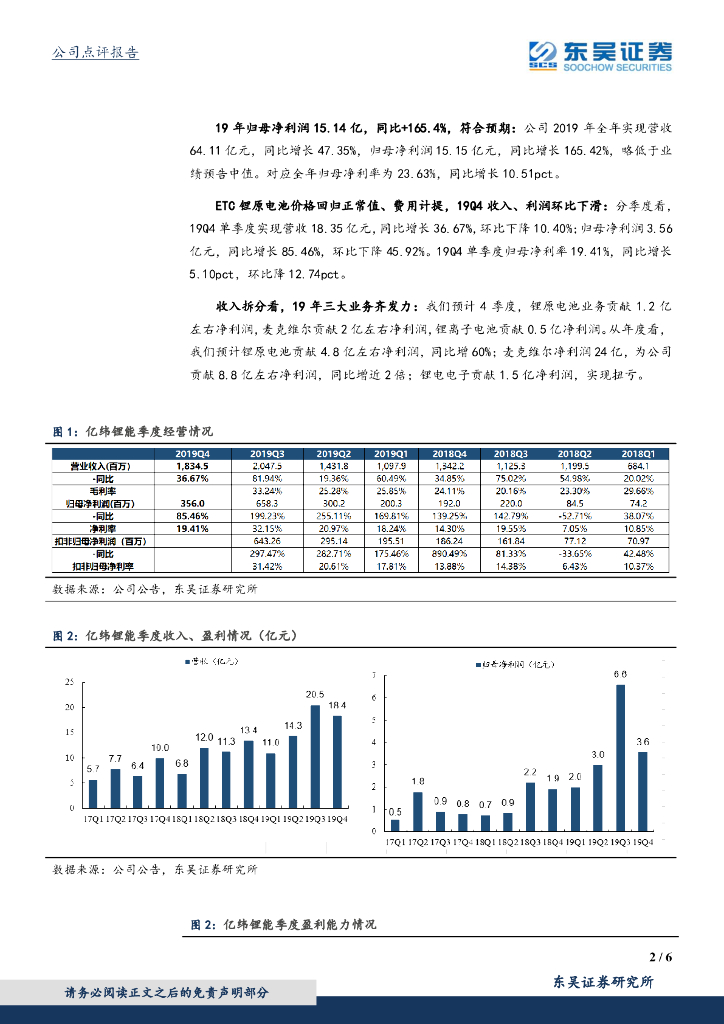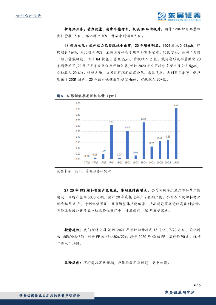 东吴证券:亿纬锂能(300014)-业绩快报点评:业绩符合预期,20年动力及TWS电池增长潜力大.pdf