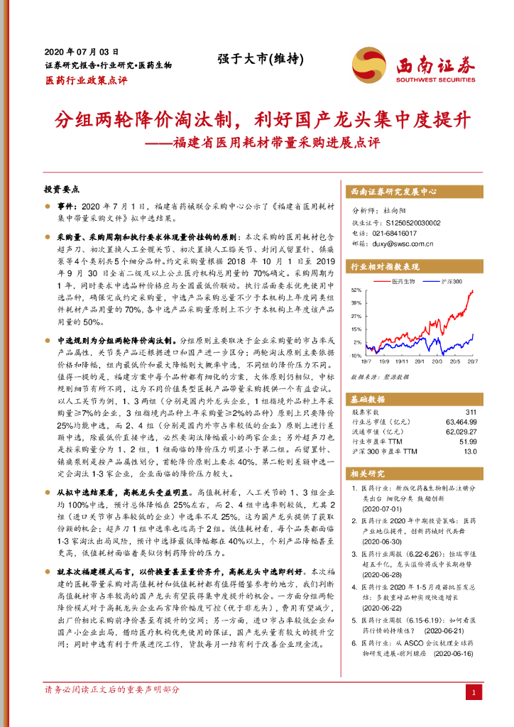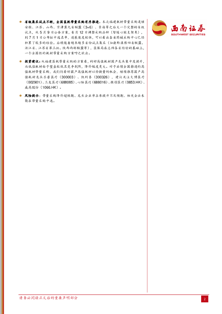 西南证券:福建省医用耗材带量采购进展点评:分组两轮降价淘汰制,利好国产龙头集中度提升.pdf
