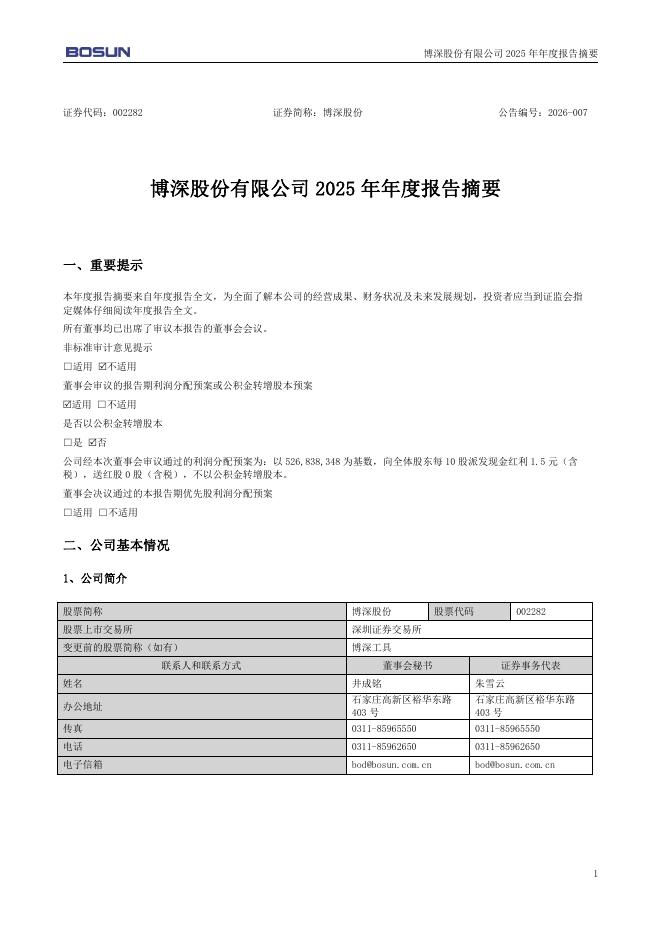 002282-博深股份:2025年年度报告摘要.pdf