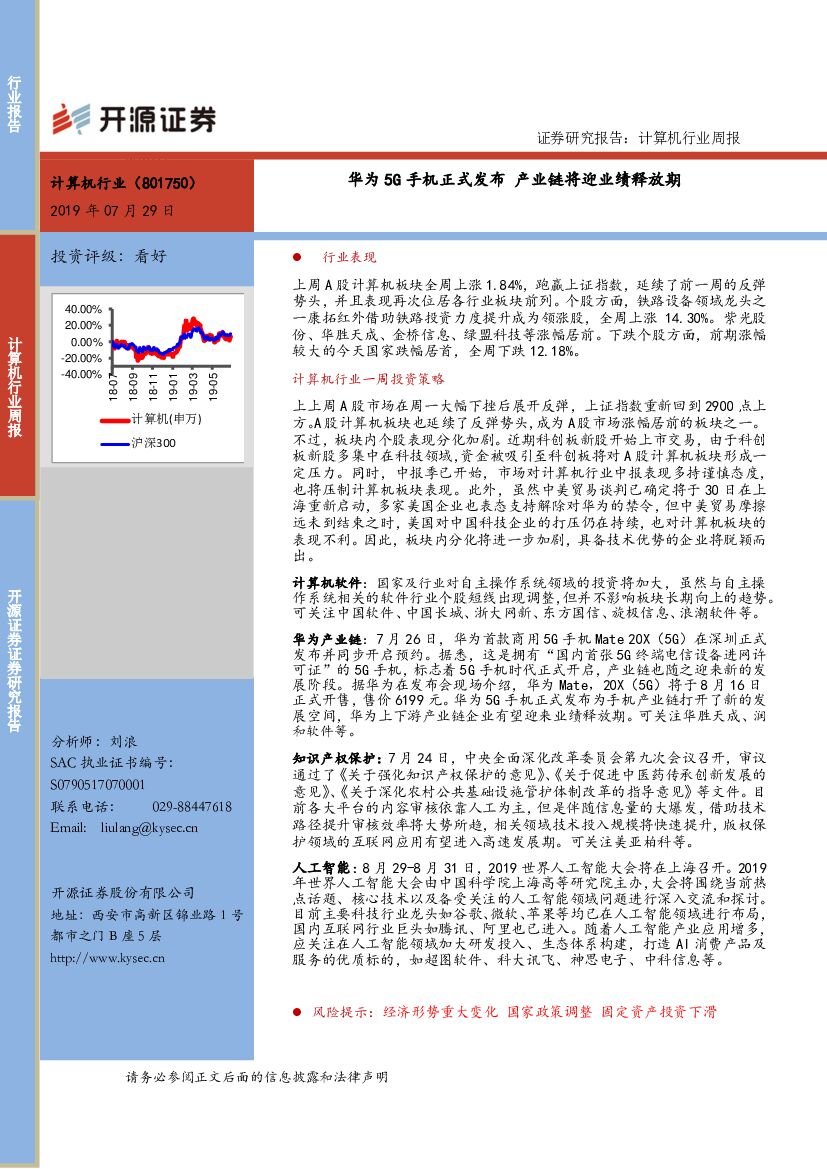 开源证券:计算机行业周报:华为5G手机正式发布 产业链将迎业绩释放期.pdf