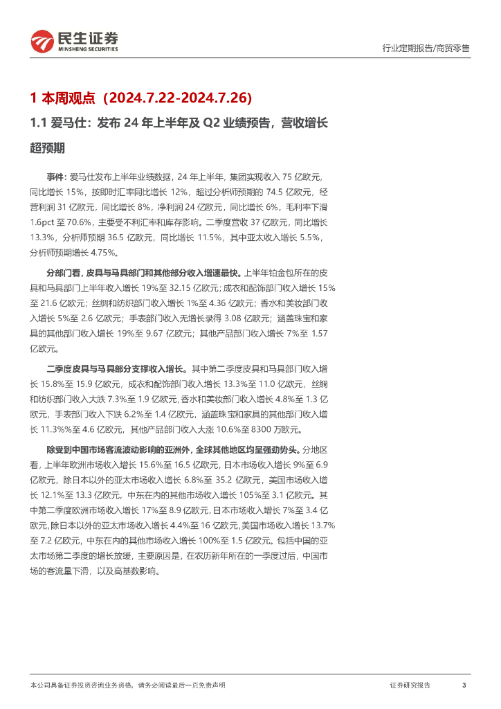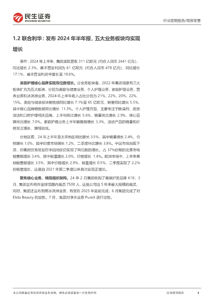 民生证券:零售周观点:爱马仕、联合利华发布24年上半年财报,中国市场销售增长放缓.pdf