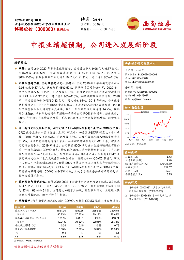 西南证券:博腾股份(300363)-中报业绩超预期,公司进入发展新阶段.pdf