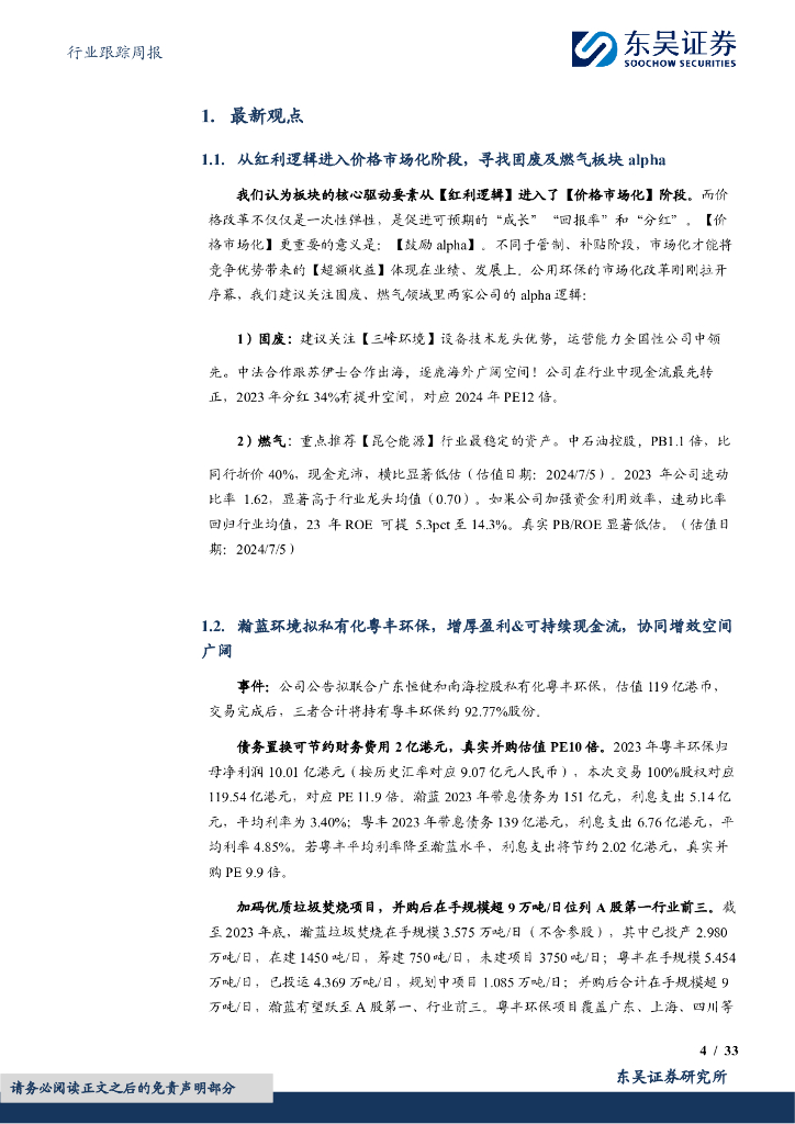 东吴证券:环保行业跟踪周报:瀚蓝环境拟私有化粤丰环保,从红利进入价格市场化阶段寻找alpha.pdf