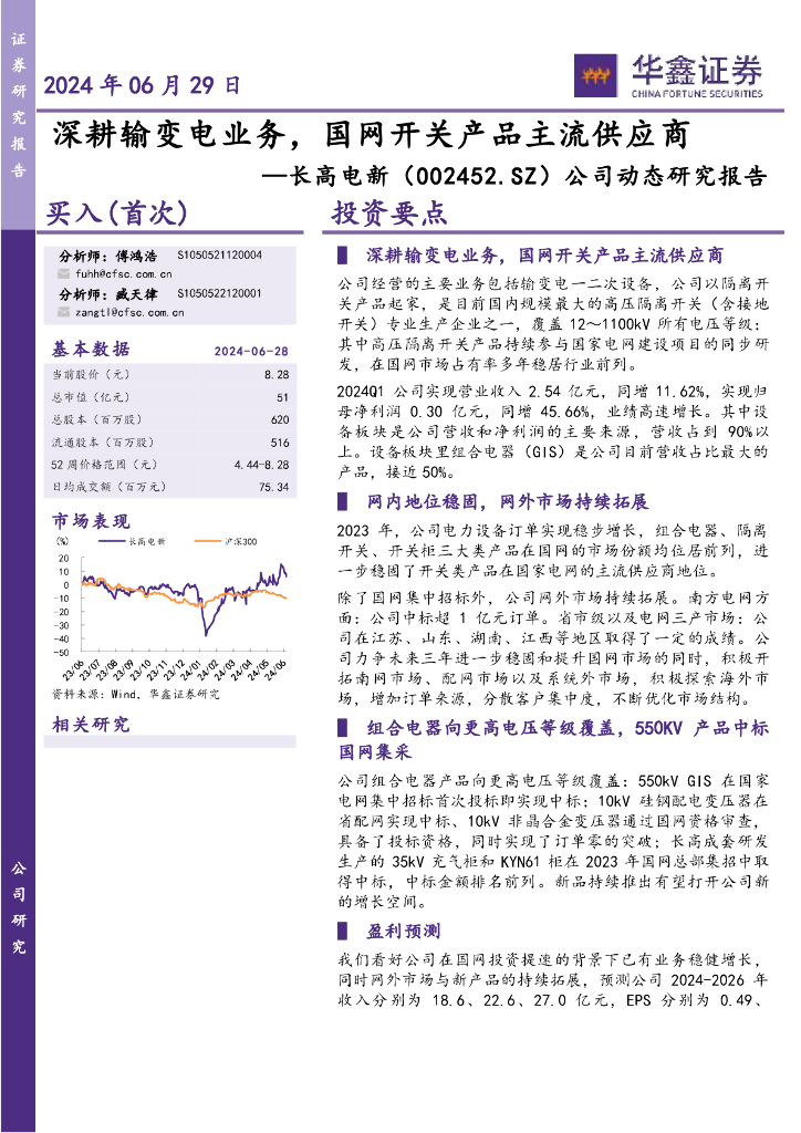华鑫证券:长高电新(002452)-公司动态研究报告:深耕输变电业务,国网开关产品主流供应商.pdf