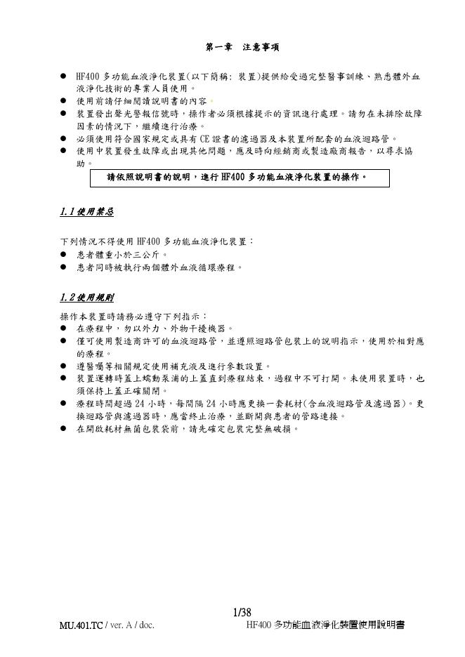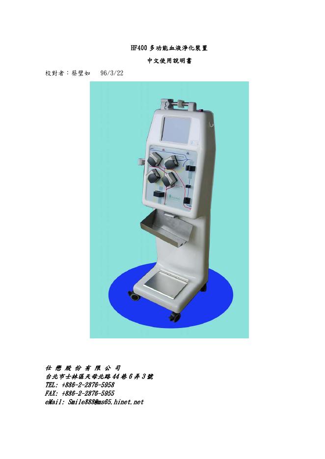 仕懋股份有限公司 HF400 多功能血液淨化裝置 中文使用說明書.pdf