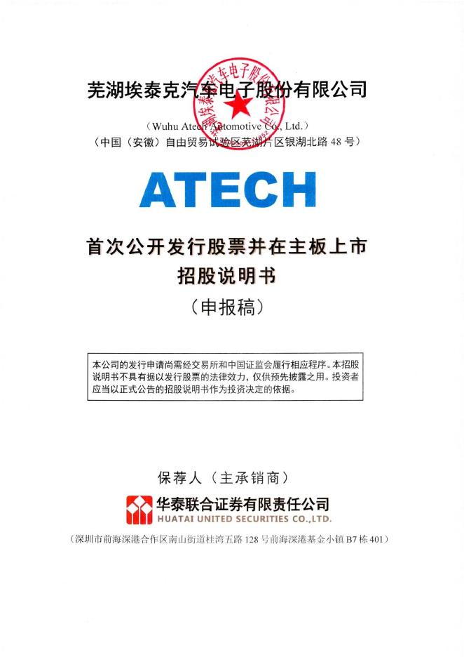 芜湖埃泰克汽车电子股份有限公司沪主板IPO上市招股说明书.pdf