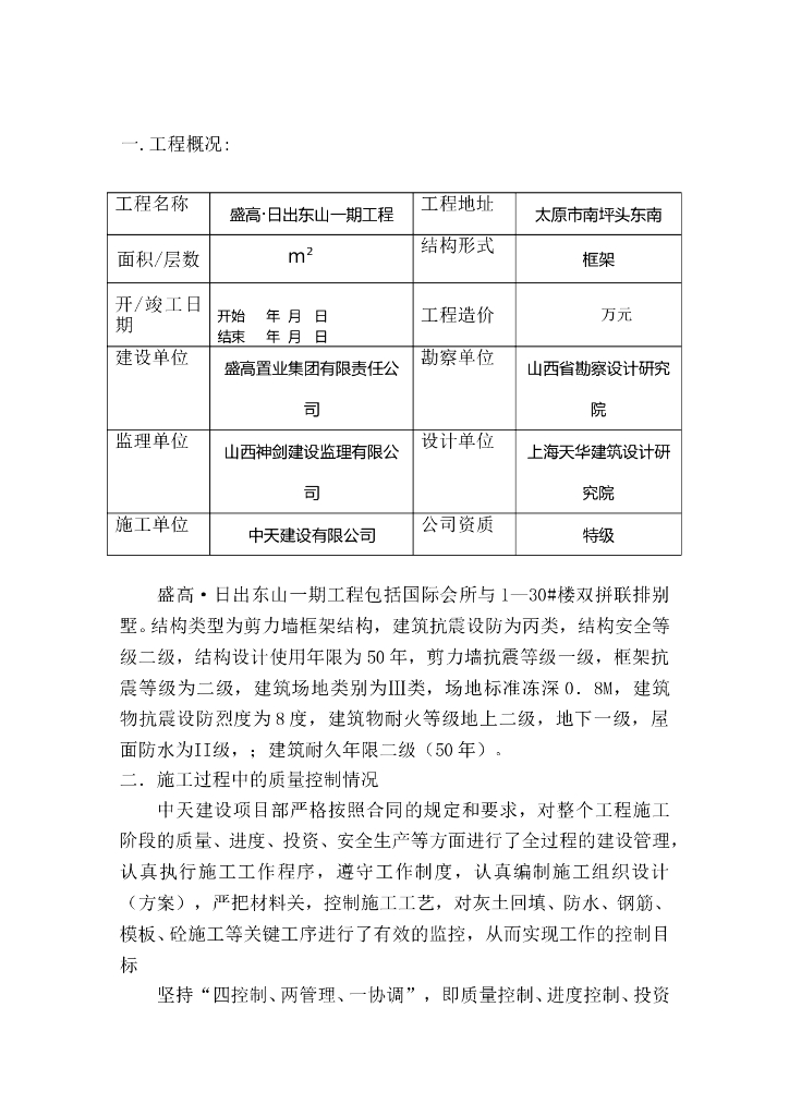 [中天建设]太原国际会所、别墅工程质量自评报告.doc