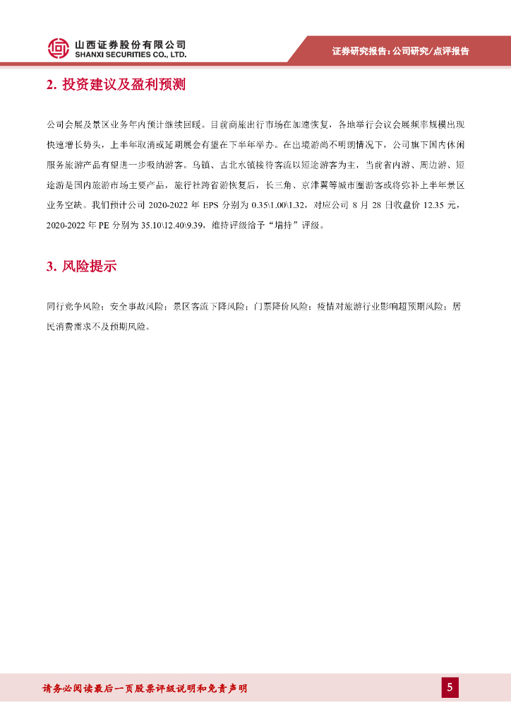 山西证券:中青旅(600138)-受一季度疫情拖累,期内南北两镇景区接待客流下滑超七成.pdf