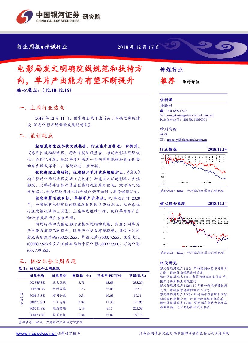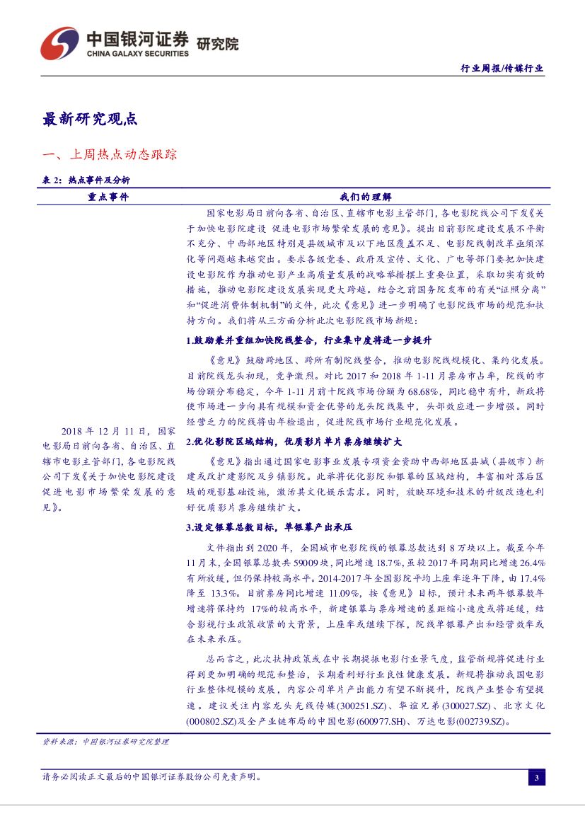 中国银河:传媒行业周报:电影局发文明确院线规范和扶持方向,单片产出能力有望不断提升.pdf