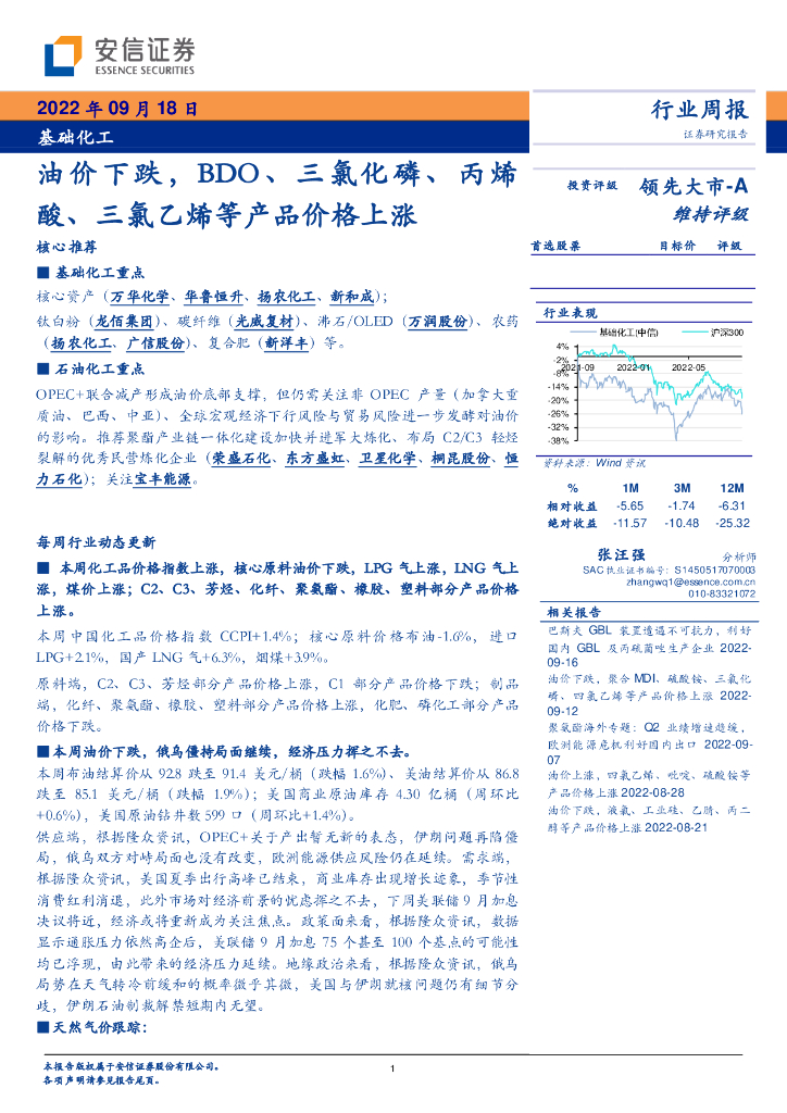 安信证券:基础化工行业周报:油价下跌,BDO、三氯化磷、丙烯酸、三氯乙烯等产品价格上涨.pdf