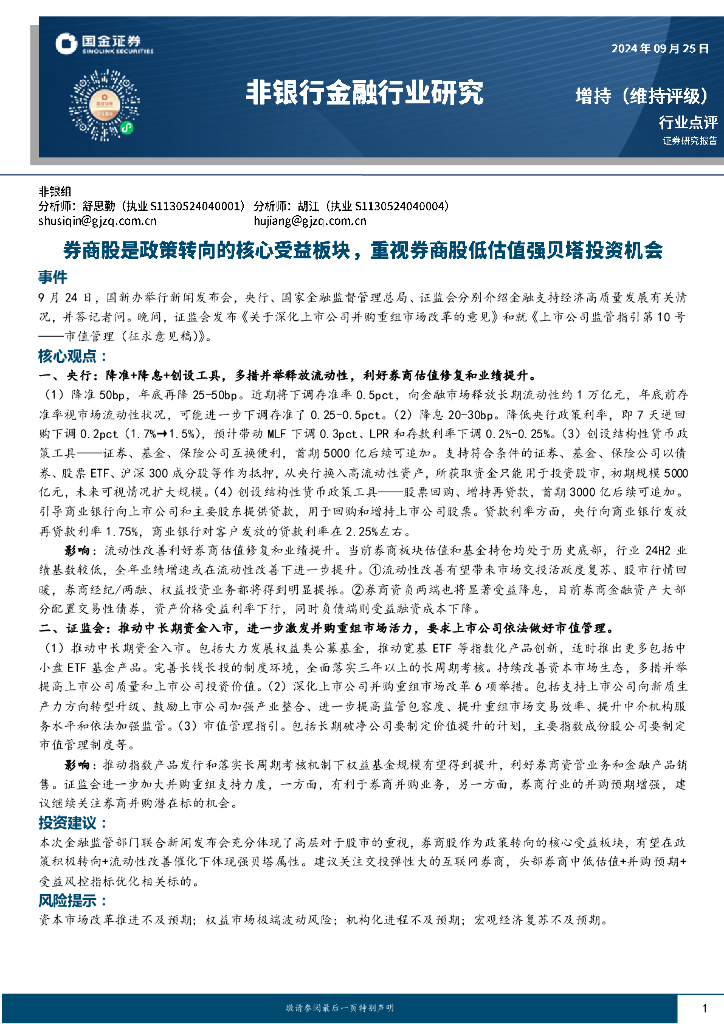 国金证券:非银行金融行业研究:券商股是政策转向的核心受益板块,重视券商股低估值强贝塔投资机会.pdf